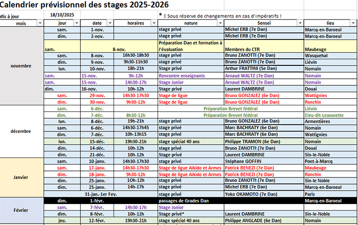 - Calendrier prévisionnel saison 2025-2026 au 30 septembre 2025
