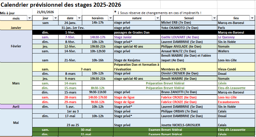 CALENDRIER GÉNÉRAL 2025 / 2026