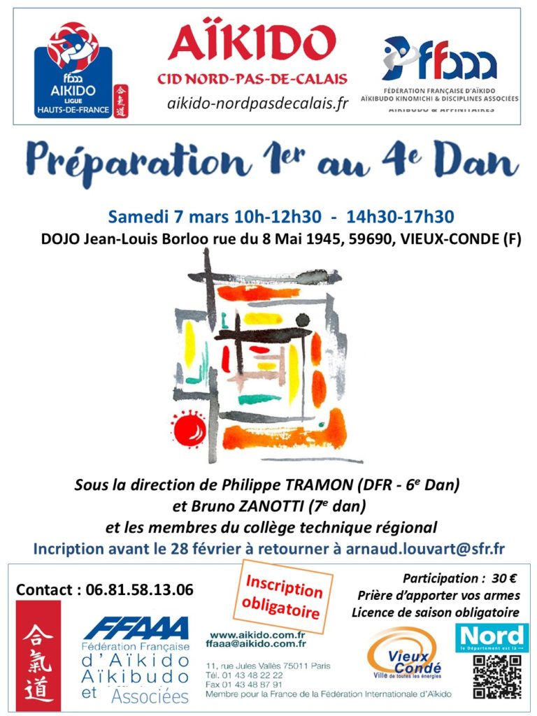 « Tous les Évènements Préparation 1er au 4e Dan le 7 mars à Vieux-Condé 7 mars 30€ « Formation à l’évaluation à Vieux-Condé le 7 mars Stage Dimitri CRENIER (6e Dan) à Douai le 8 mars 2026 » Télécharger et imprimer l’affiche : 2026_03_07_prepa_1_4_CTR Télécharger et imprimer la fiche d’inscription : Fiche-inscription-prepa dan 7 mars 2026 à retourner dûment remplie et signée à Arnaud LOUVART avant le 28 février, délai de rigueur : arnaud.louvart@sfr.fr + Google Agenda+ Exporter vers iCal Détails Date : 7 mars Prix : 30€ Catégorie d’Évènement: Stages de formation Organisateur Ligue Hauts-de-France Lieu Vieux-Condé (59) Dojo Jean-Louis Borloo Dojo Jean-Louis Borloo rue du 8 Mai 1945 Vieux Condé, 59690 + Google Map