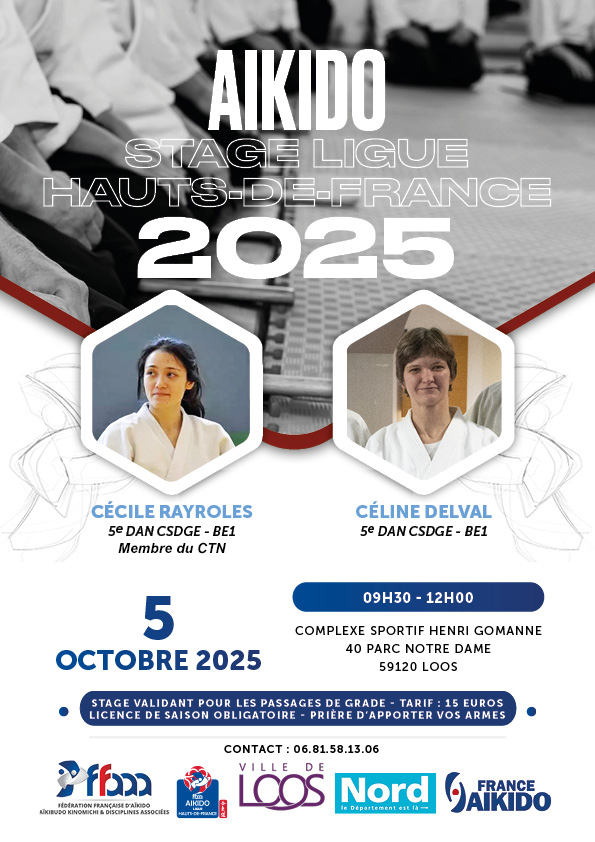 « Tous les Évènements Stage de Ligue, co-animé par Cécile RAYROLES (5e Dan) et Céline DELVAL (5e Dan) dimanche 5 octobre 5 octobre à 9 h 30 min - 12 h 00 min « Stage de Ligue, co-animé par Cécile RAYROLES (5e Dan) et Céline DELVAL (5e Dan) samedi 4 octobre Préparation Brevet fédéral, première partie, samedi 11 octobre » Télécharger et imprimer l’affiche : 2025_10_05_stage_ligue_Delval-Rayroles_loos + Google Agenda+ Exporter vers iCal Détails Date : 5 octobre Heure : 9 h 30 min - 12 h 00 min Catégorie d’Évènement: Stages de ligue Organisateur Ligue Hauts-de-France