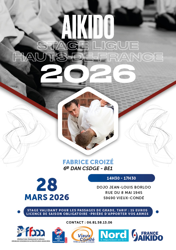 « Tous les Évènements Stage de Ligue – Fabrice CROIZE (6e Dan) les 28 et 29 mars 28 mars 2026 à 14 h 30 min - 17 h 30 min 15€ « Préparation Brevet fédéral les 14 et 15 mars à Liévin Stage de Ligue – Fabrice CROIZE (6e Dan) les 28 et 29 mars » Télécharger et imprimer l’affiche : 2026_03_28_Stage_Ligue_Croize_vieux_conde + Google Agenda+ Exporter vers iCal Détails Date : 28 mars 2026 Heure : 14 h 30 min - 17 h 30 min Prix : 15€ Catégorie d’Évènement: Stages de ligue Organisateur Ligue Hauts-de-France Lieu Vieux-Condé (59) Dojo club Vieux-Condéen Complexe Sportif rue du 8 Mai 1945 Vieux Condé, 59690 + Google Map