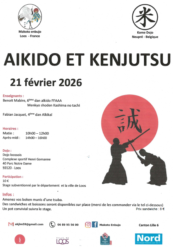 Stage Kenjutsu dirigé par Benoît MABIRE (6e dan) et Fabien JACQUET (4e Dan)